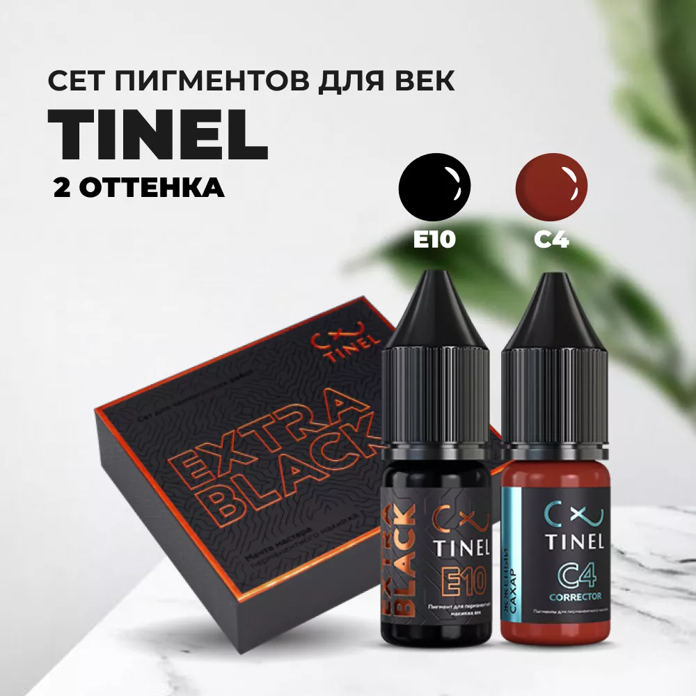 Е10 - Экстра чёрный и С4 - Жжёный сахар идеальный дуэт, представленный в сете для перманентного макияжа век «Extra Black».Отличная возможность для мастеров познакомиться с пигментом Е10 «Экстра черный».