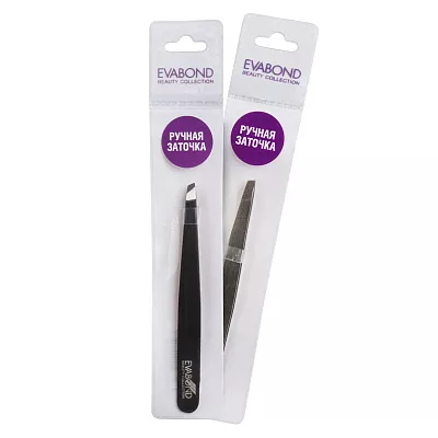 Пинцет для бровей скошенный черный Eva bond (ручная заточка)