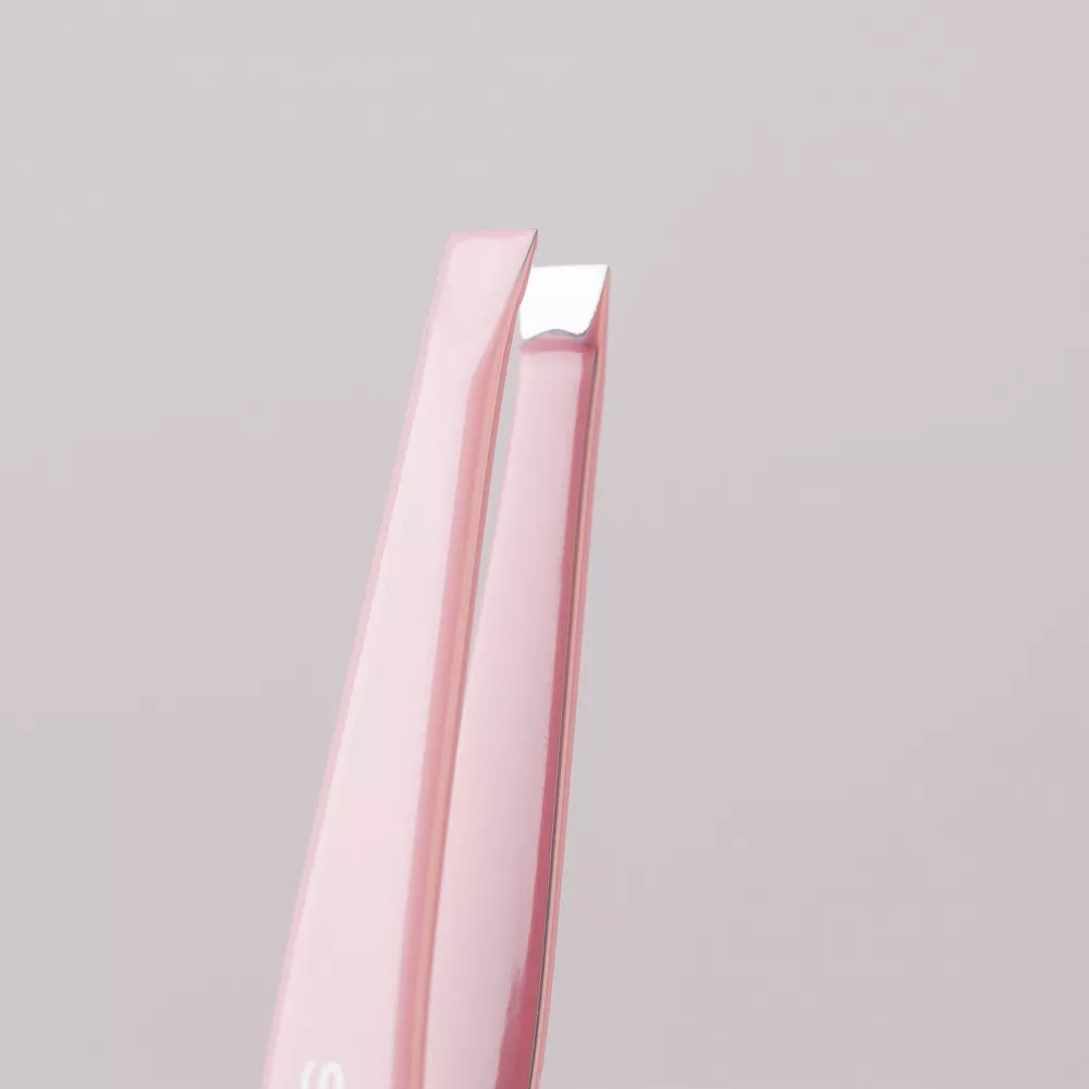 Конструкция состоит из удлиненной ручки и прямых рабочих кромок. Размер пинцета от кончиков рабочей части до ручки составляет 95 мм. За счет длинной ручки улучшается обзор на область коррекции. Форма полотен удобна в использовании, легко справляется с моделированием любой части бровных дуг.