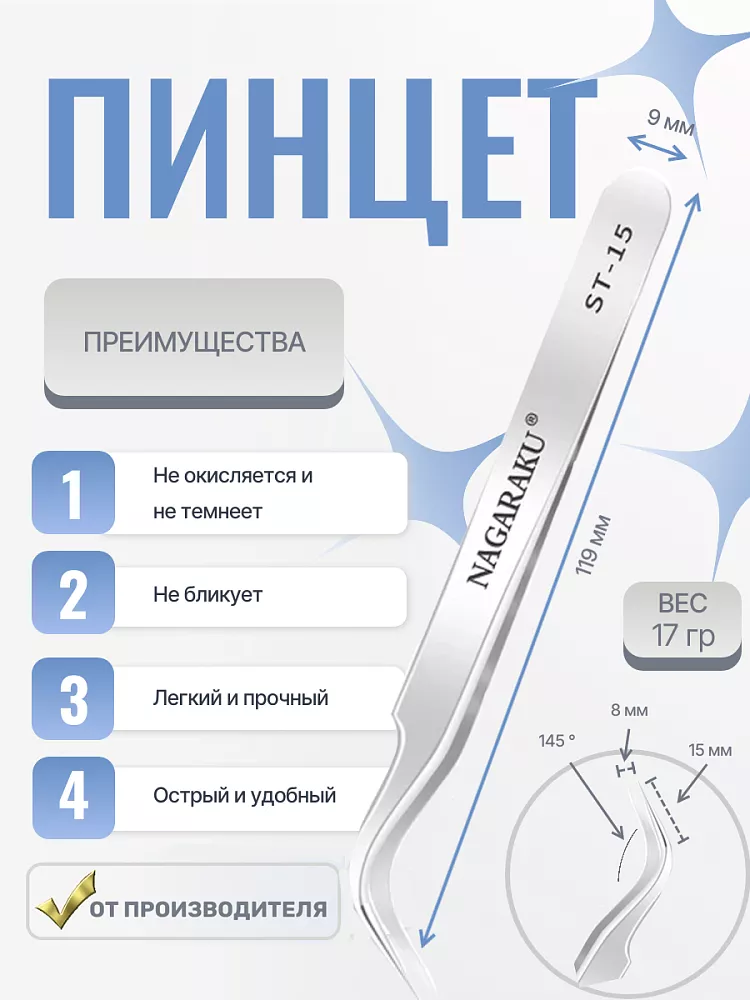 Пинцет NAGARAKU ST-15 (изогнутый)