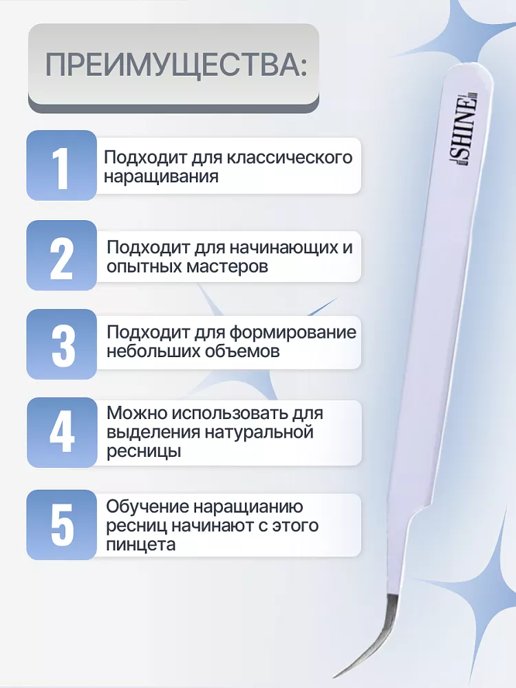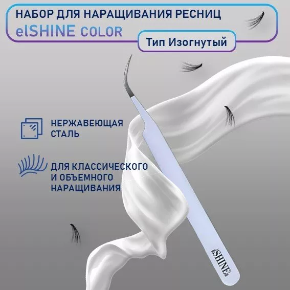 Пинцет для наращивания ресниц elSHINE, серия Color, тип Изогнутый