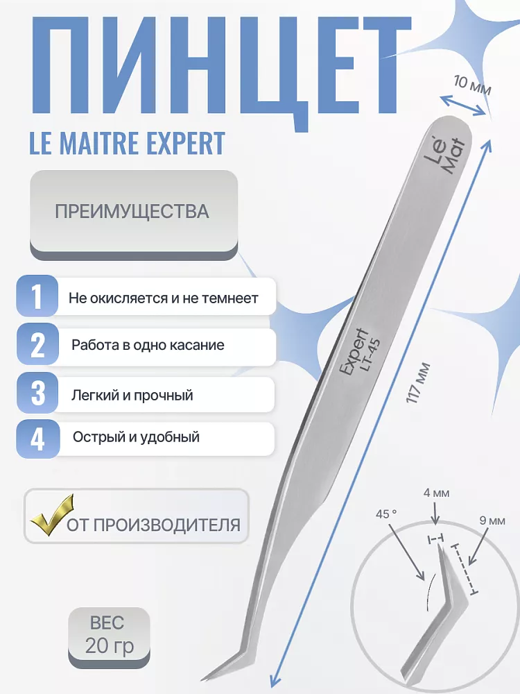 Пинцет профессиональный Le Maitre "Expert" LT 45