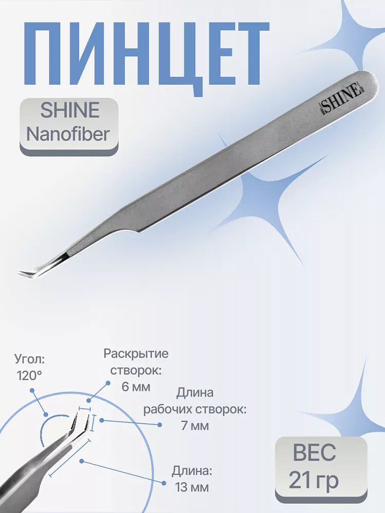Пинцет для наращивания ресниц elSHINE, серия NanoFiber, тип L 5 мм