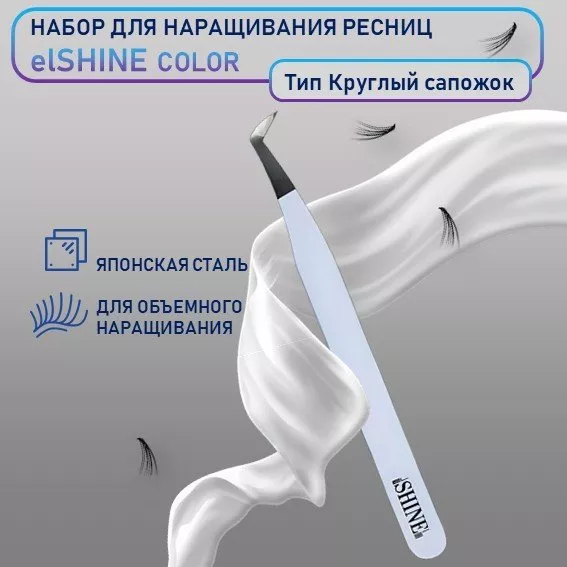 Пинцет для наращивания ресниц elSHINE, серия Color, тип Круглый сапожок