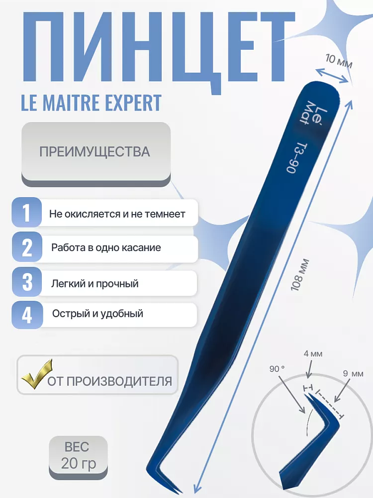 Пинцет профессиональный Le Maitre "Expert" Arctic T3 90