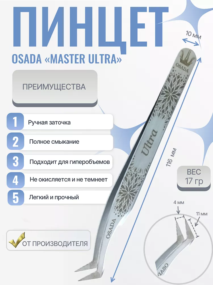 Пинцет Osada (Осада) Master_Ultra (Серебристый)
