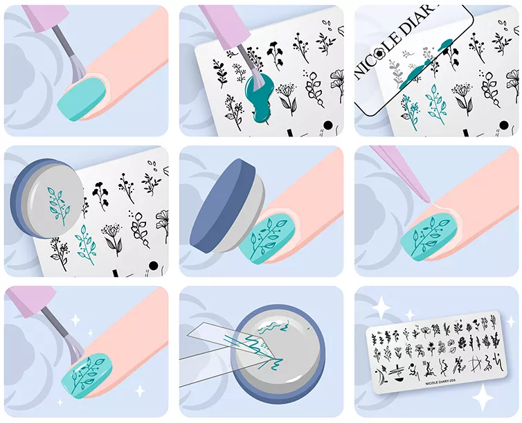 Печатные формы помогают мастеру сделать профессиональный дизайн ногтей, повторить на каждом пальце одинаковый рисунок. Используя стемпинг, можно добиться великолепных результатов за считанные минуты.