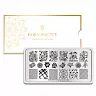 Пластина изготовлена из прочного металла. Она гладкая и блестящая, что позволяет наносить высокоточные рисунки с идеальной проработкой даже самых мелких деталей рисунка. Рисунки можно комбинировать, наносить их разными цветами лаков, добавлять стразы, жемчуг, бульйонки, а также любые другие декоративные элементы.