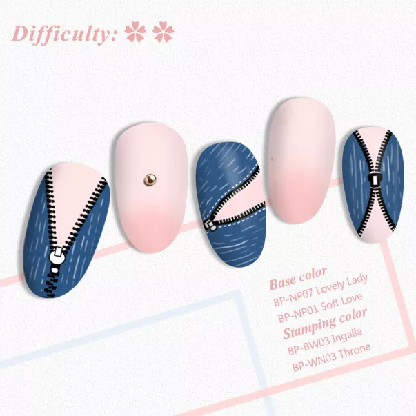 Способ применения: нанести небольшое количество краски или специального высокопигментированного лака для ногтей на пластину с трафаретами, убрать излишки скребочком, придавить подушечку-штамп к рисунку и перенести его на ноготь. После перекрыть рисунок защитным верхним покрытием.
