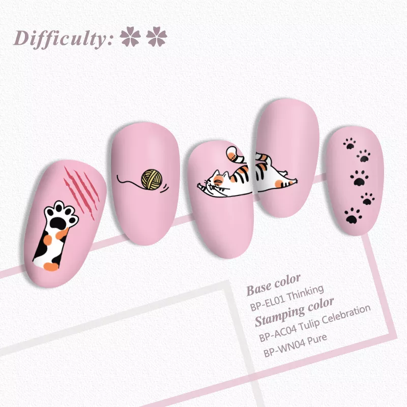 Способ применения: нанести небольшое количество краски или специального высокопигментированного лака для ногтей на пластину с трафаретами, убрать излишки скребочком, придавить подушечку-штамп к рисунку и перенести его на ноготь. После перекрыть рисунок защитным верхним покрытием.