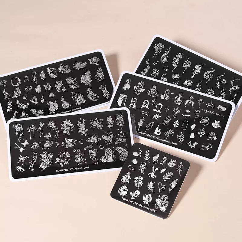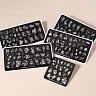 Пластина изготовлена из прочного металла. Она гладкая и блестящая, что позволяет наносить высокоточные рисунки с идеальной проработкой даже самых мелких деталей рисунка. Рисунки можно комбинировать, наносить их разными цветами лаков, добавлять стразы, жемчуг, бульйонки, а также любые другие декоративные элементы.