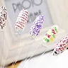 Способ применения: нанести небольшое количество краски или специального высокопигментированного лака для ногтей на пластину с трафаретами, убрать излишки скребочком, придавить подушечку-штамп к рисунку и перенести его на ноготь. После перекрыть рисунок защитным верхним покрытием.