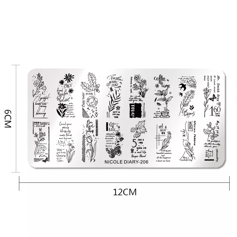 Nicole Diary, Пластина для стемпинга 12*6 см 51041 ND-206, 1 шт