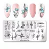 Пластина изготовлена из прочного металла. Она гладкая и блестящая, что позволяет наносить высокоточные рисунки с идеальной проработкой даже самых мелких деталей рисунка. Рисунки можно комбинировать, наносить их разными цветами лаков, добавлять стразы, жемчуг, бульйонки, а также любые другие декоративные элементы.