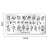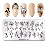 Пластина изготовлена из прочного металла. Она гладкая и блестящая, что позволяет наносить высокоточные рисунки с идеальной проработкой даже самых мелких деталей рисунка. Рисунки можно комбинировать, наносить их разными цветами лаков, добавлять стразы, жемчуг, бульйонки, а также любые другие декоративные элементы.