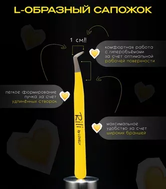 Пинцет для наращивания Rili тип «Сапожок» предназначен для создания сверхобъемов от 2D до 20D. Большая площадь соприкосновений позволяет делать объемные пучки