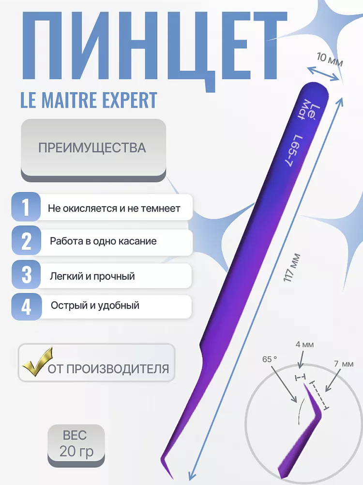 Пинцет профессиональный Le Maitre "Expert" BLUE-PURPLE L 65-7