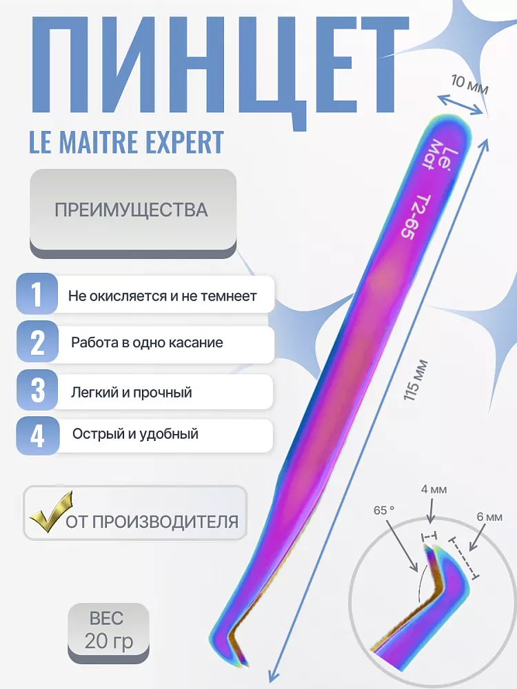 Пинцет профессиональный Le Maitre "Expert" Mirage T2 65