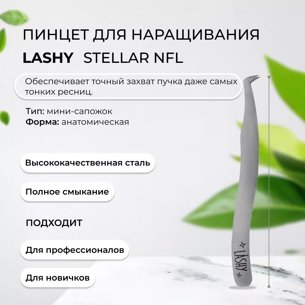 Пинцет профессиональный для наращивания ресниц LASHY, серия STELLAR NFL, тип Мини-сапожок