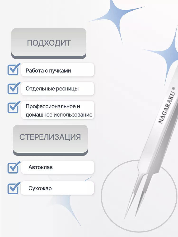 Пинцеты NAGARAKU — это профессиональный инструмент, который поможет мастеру достичь идеального результата в работе с ресницами. Надежность, точность и комфорт использования делают их незаменимыми помощниками в работе.