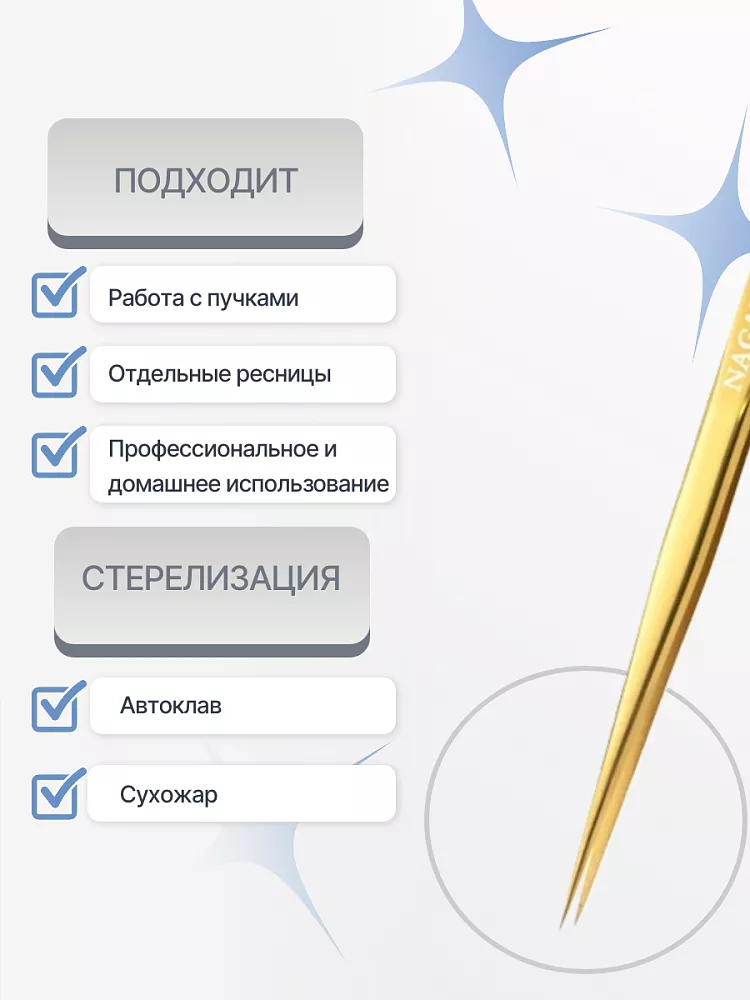 Пинцеты NAGARAKU — это профессиональный инструмент, который поможет мастеру достичь идеального результата в работе с ресницами. Надежность, точность и комфорт использования делают их незаменимыми помощниками в работе.
