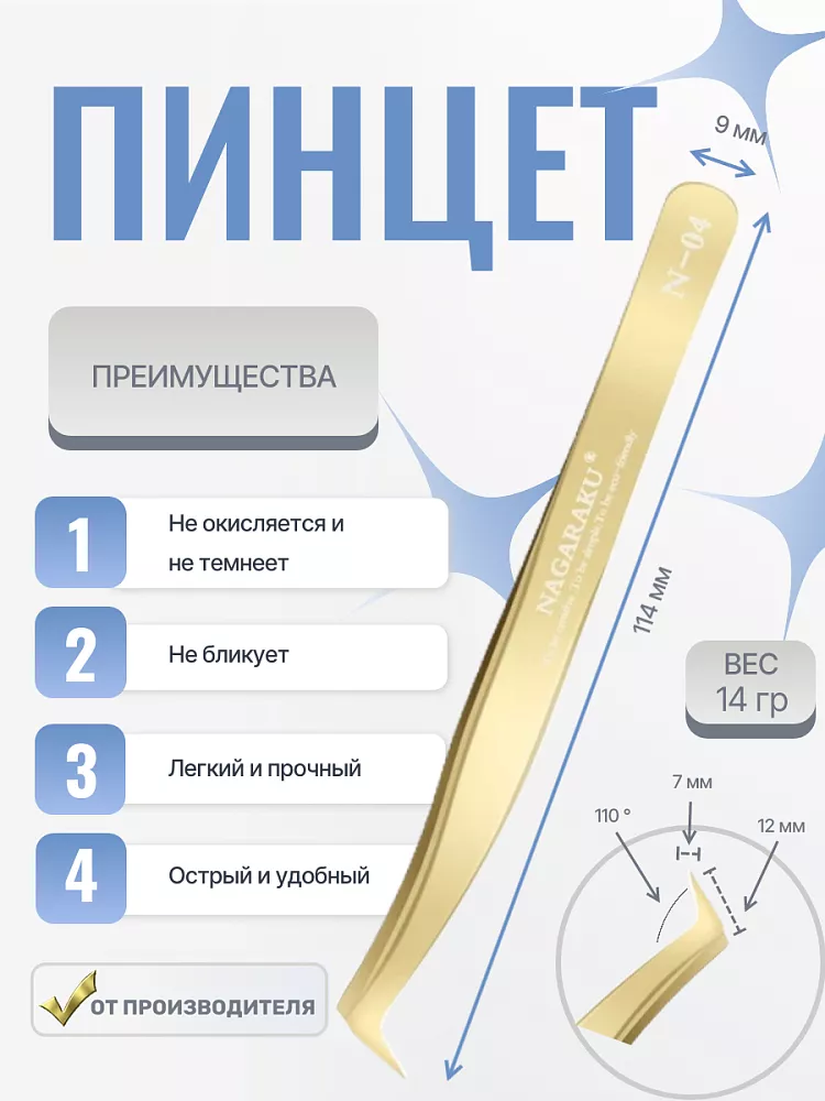 Пинцеты NAGARAKU — это профессиональный инструмент, который поможет мастеру достичь идеального результата в работе с ресницами. Надежность, точность и комфорт использования делают их незаменимыми помощниками в работе.""