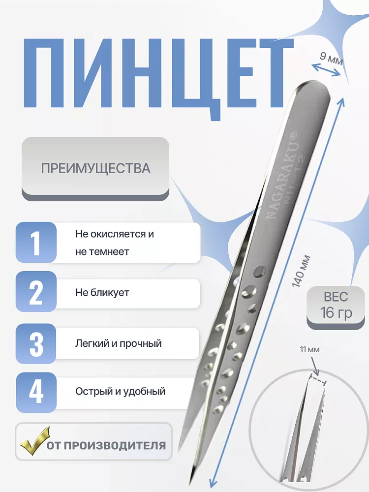 Пинцеты NAGARAKU — это профессиональный инструмент, который поможет мастеру достичь идеального результата в работе с ресницами. Надежность, точность и комфорт использования делают их незаменимыми помощниками в работе."