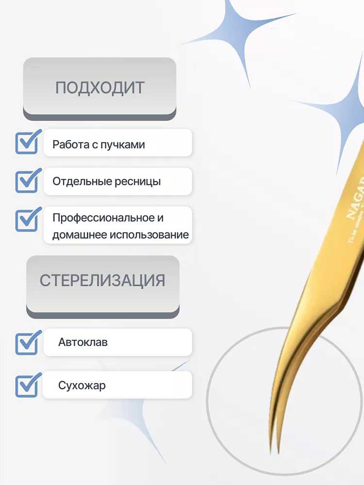 Пинцеты NAGARAKU — это профессиональный инструмент, который поможет мастеру достичь идеального результата в работе с ресницами. Надежность, точность и комфорт использования делают их незаменимыми помощниками в работе.