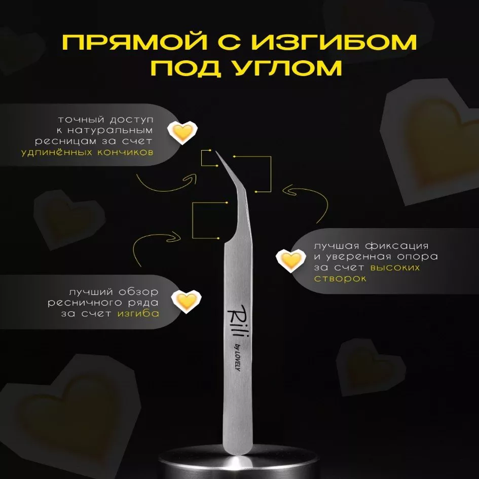 Пинцет для наращивания ресниц Rili, Yellow line прямой с изгибом под углом