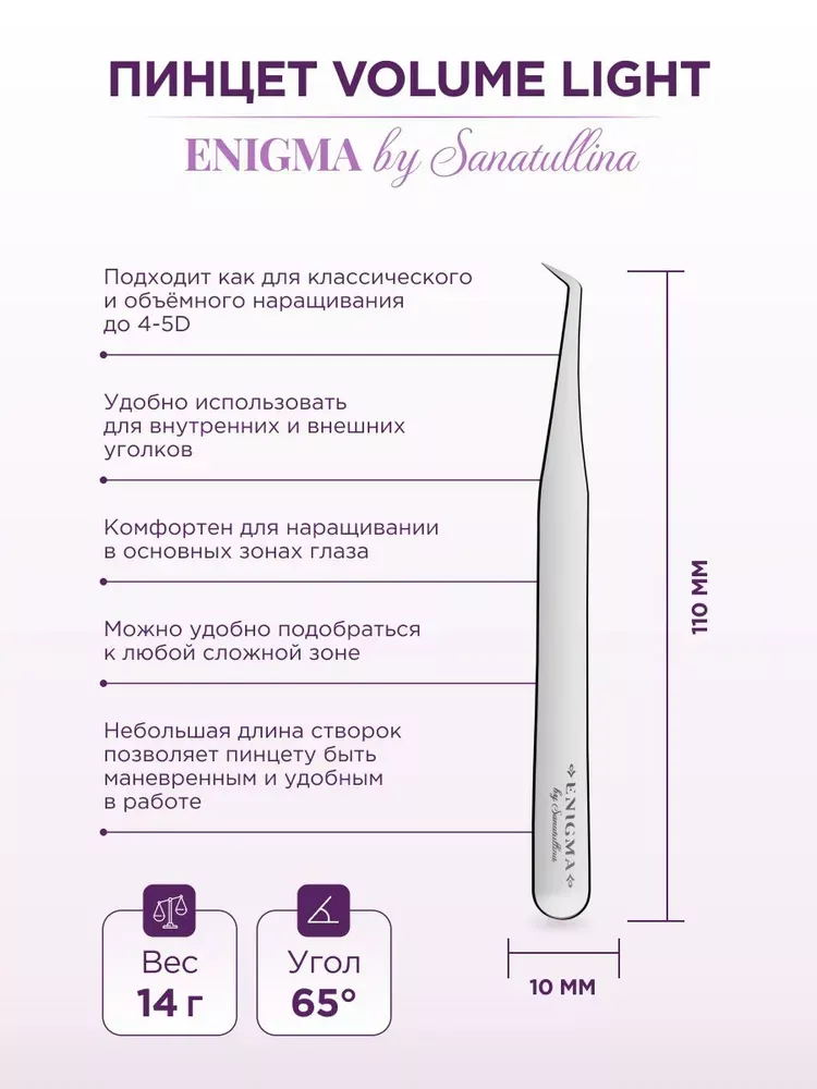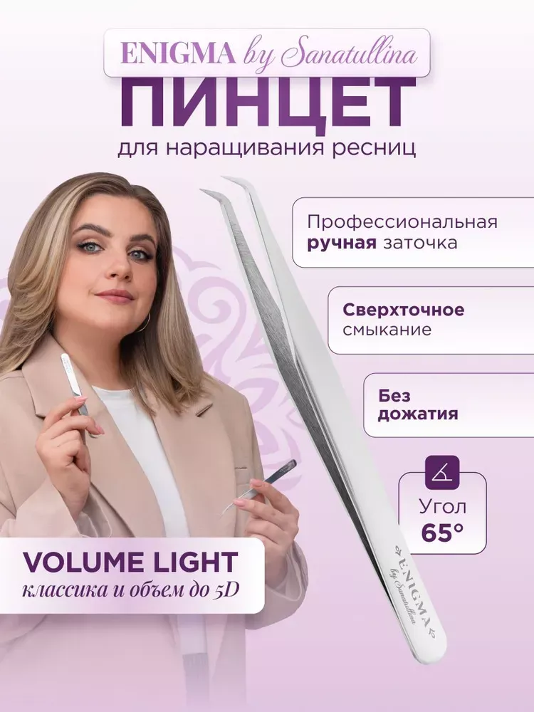 Пинцет для наращивания ресниц "Volume light" Enigma by Sanatullina (Metallic с ручной заточкой extra-sharp)