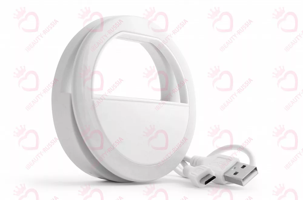 Круглая селфи-лампа для смартфона и планшета - имеет широкий спектр света, что позволяет делать четкие фотографии даже в темном помещении.