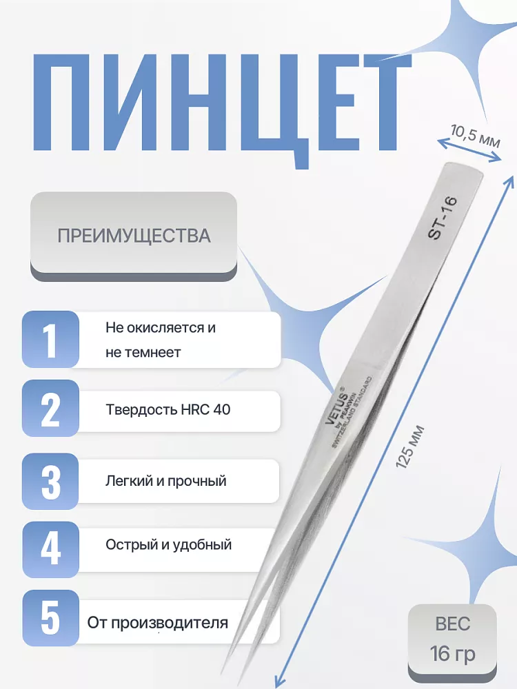 Пинцет Vetus (Ветус) ST-16