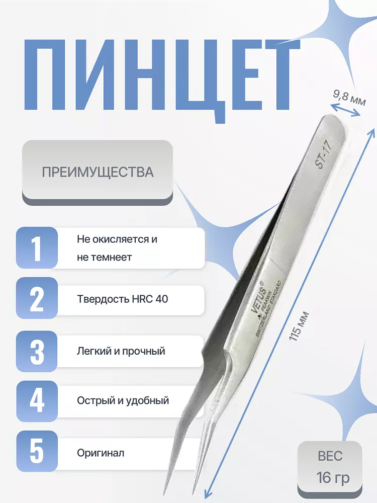 Пинцет для наращивания с изогнутыми супертонкими кончиками. Антимагнитный, кислотостойкий. Изготовлен из специальной нержавеющей стали.