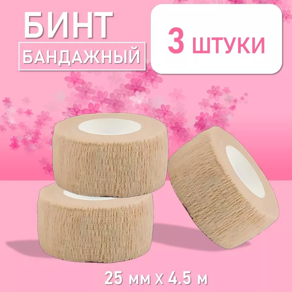 Бинт эластичный бандажный, для тату 25мм х 4,5м песочный, 3 шт.
