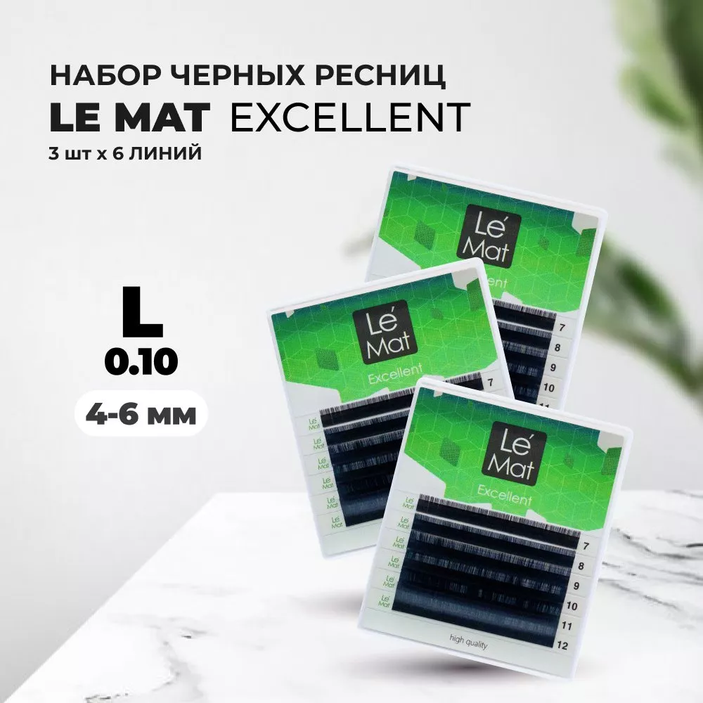 Набор Ресницы черные Le Maitre "Excellent" 6 линий L 0.10 MIX 4-6 mm, 3 штуки