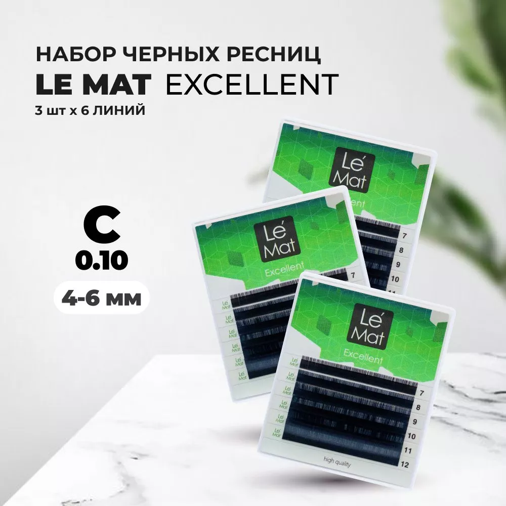 Набор Ресницы черные Le Maitre "Excellent" 6 линий C 0.10 MIX 4-6 mm, 3 штуки
