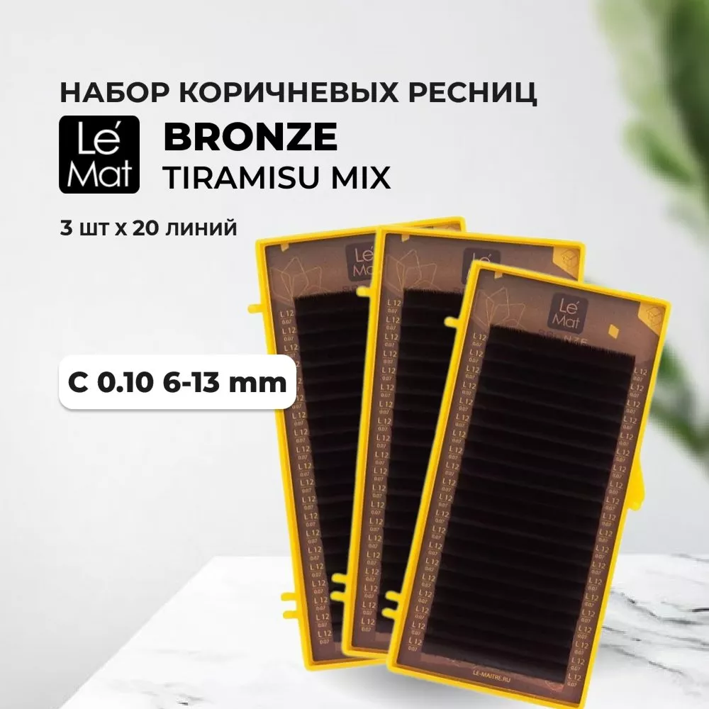 - Ресницы коричневые Tiramisu Le Maitre "Bronze" 20 линий C 0.10 MIX 6-13 mm, 3 штуки