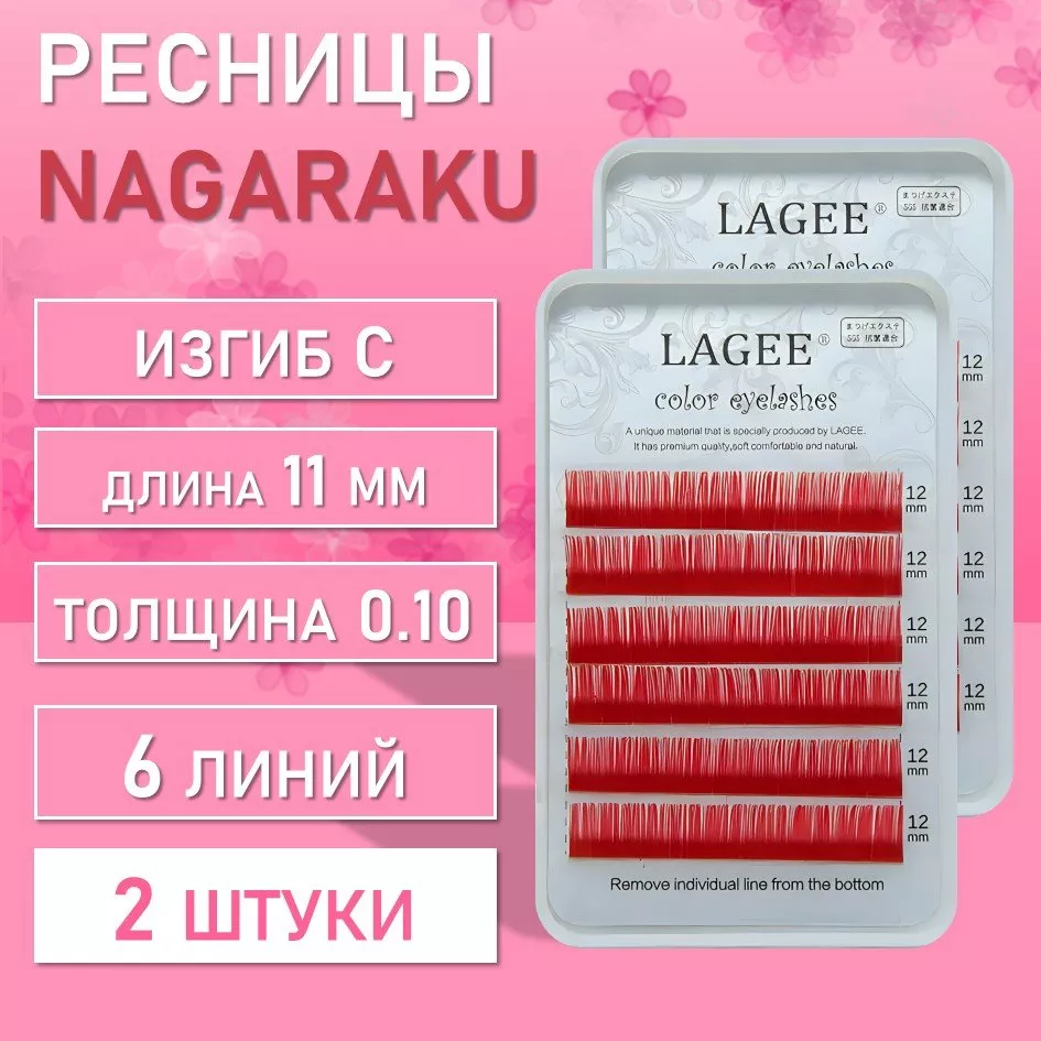 Ресницы Цветные Nagaraku (Нагараку) MINI, красные C, 0.10, 11 mm 2 шт