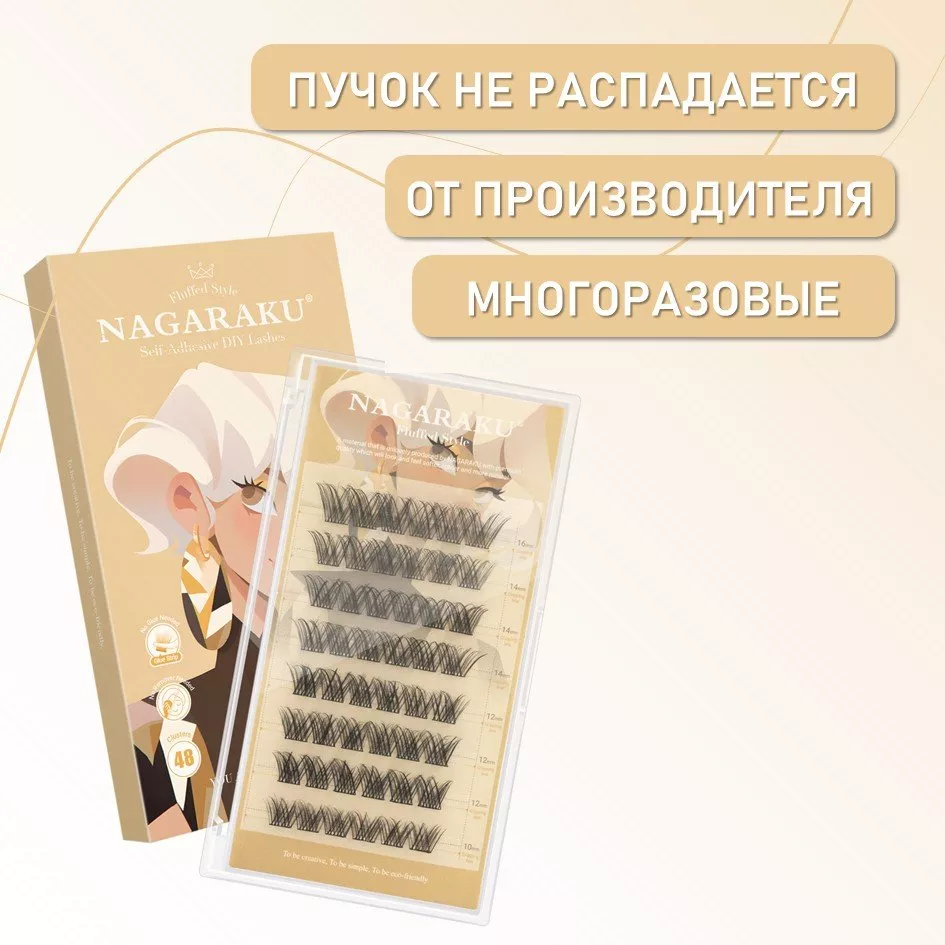 Самоклеящиеся ресницы, готовые пучки NAGARAKU C. 0.07мм 10,12,14,16 мм 2 шт