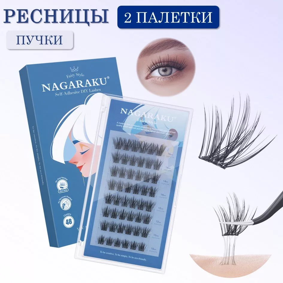 Самоклеящиеся ресницы, готовые пучки NAGARAKU C. 0.07мм. 10,12,14,16 мм 2 шт