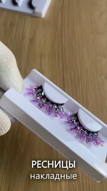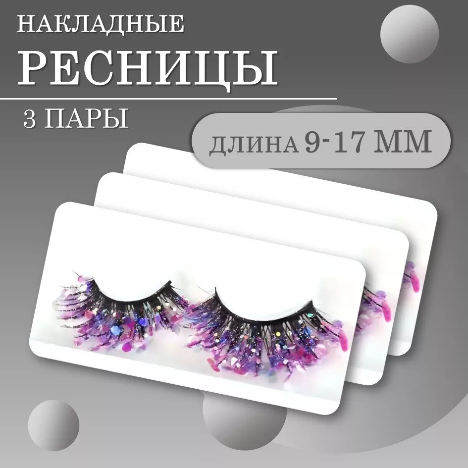 Фиолетовые ресницы с блёстками — это яркий и необычный аксессуар для создания экстравагантного образа. Комплект из 3 пучков с мерцающим эффектом идеально подходит для праздничных мероприятий, фотосессий и тематических вечеринок.