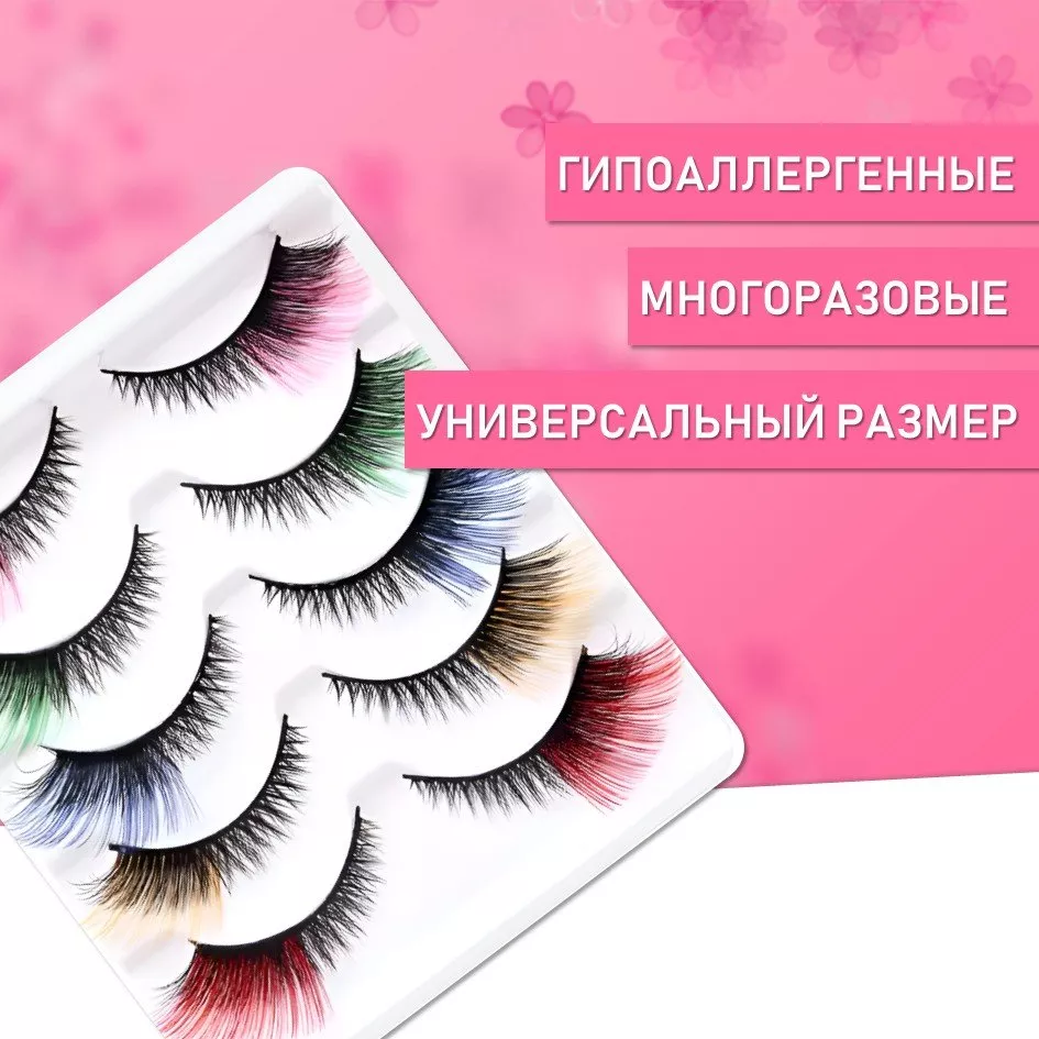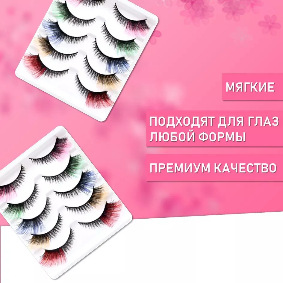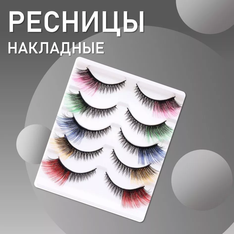 Ресницы накладные пять пар, цветные кончики
