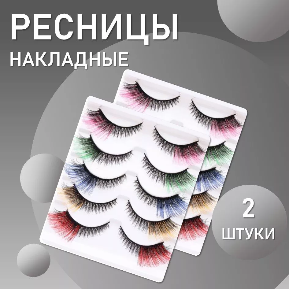 Ресницы накладные пять пар, цветные кончики 2шт