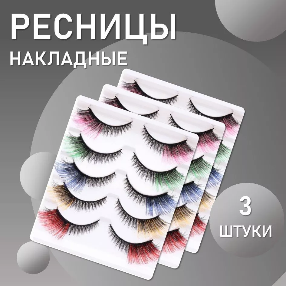 Ресницы накладные пять пар, цветные кончики 3 шт