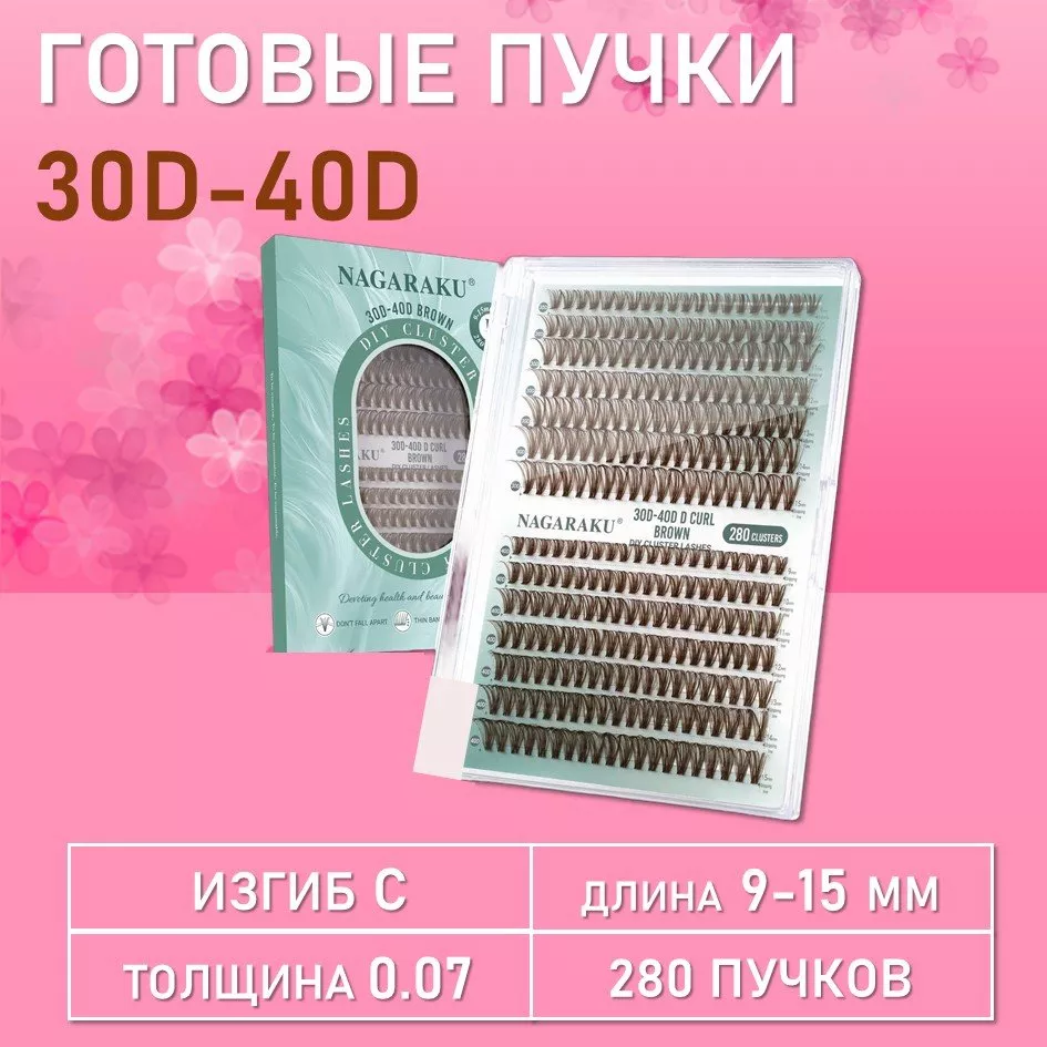 Коричневые ресницы 30-40D, 280 готовых пучков