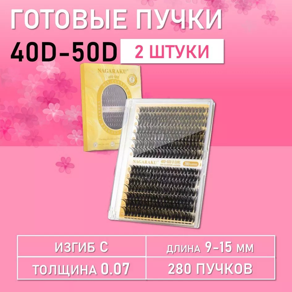 Черные ресницы 40-50D, 280 готовых пучков С 0.07 9-15 2 шт