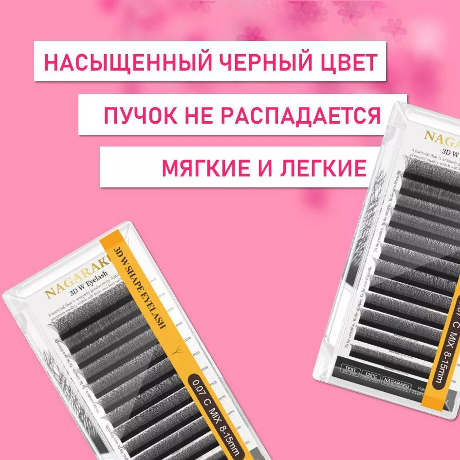 Мягкие, пушистые ресницы создают естественный объем без утяжеления. Клиенты оценят безупречное качество и комфорт носки, а мастера — простоту и скорость работы с материалом. Пучки Nagaraku 3DW Black — выбор профессионалов, стремящихся к совершенству в искусстве наращивания ресниц.