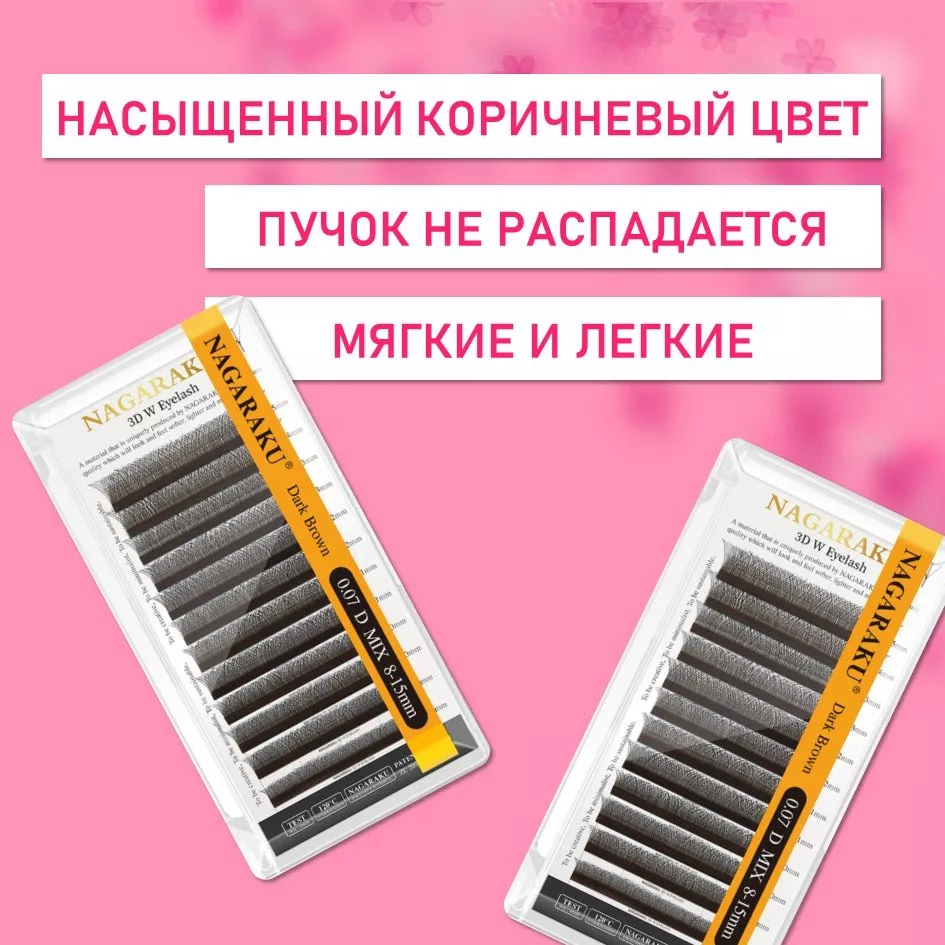 Ресницы Пучки Nagaraku 3DW Brown С 0.10 12 2 шт