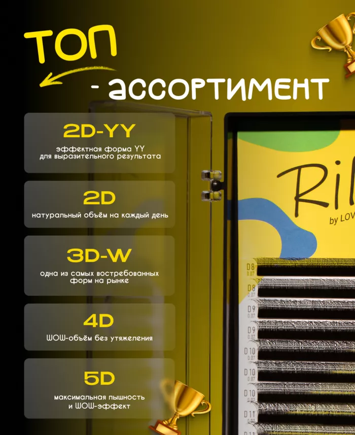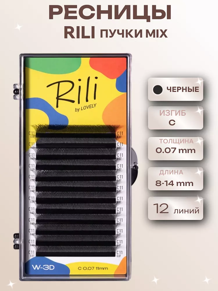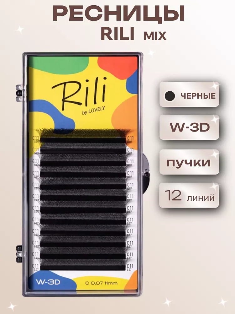 Ресницы черные Rili в пучках W-3D - 12 линий - MIX