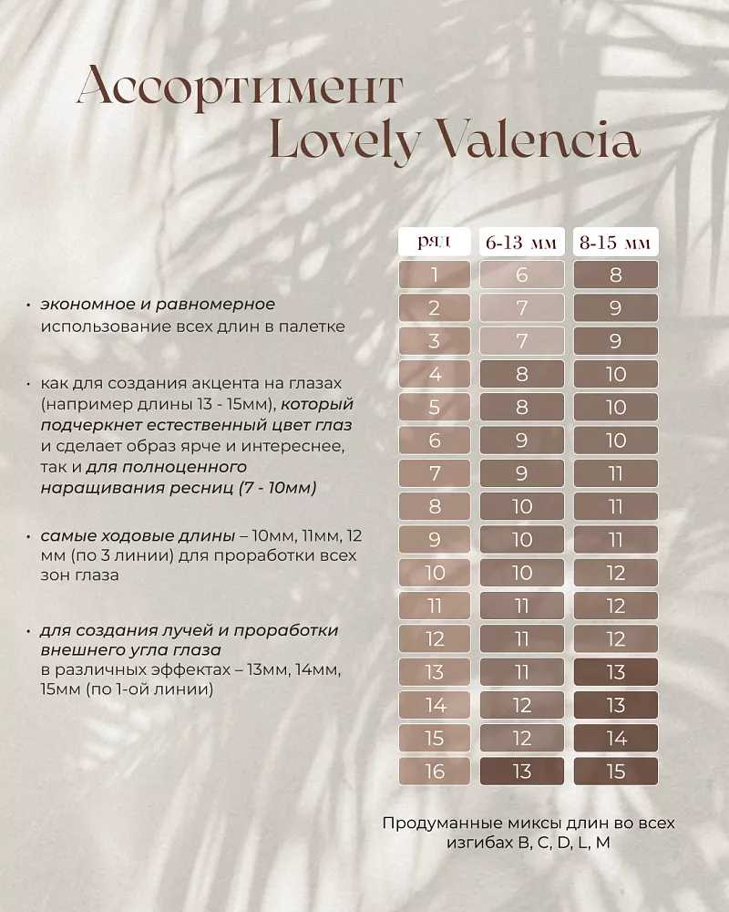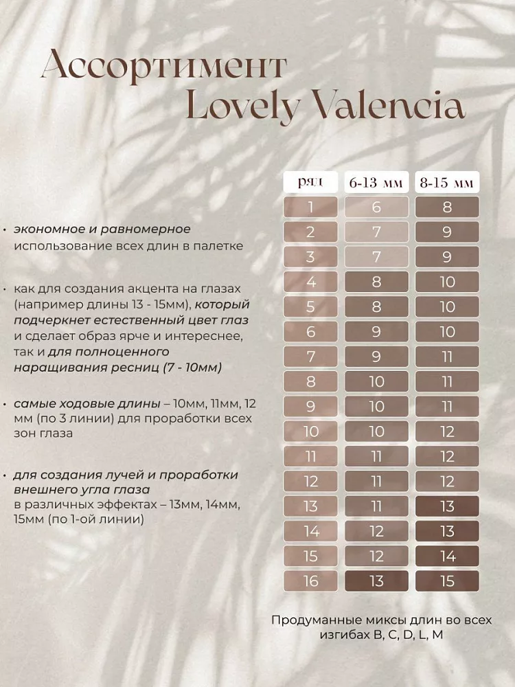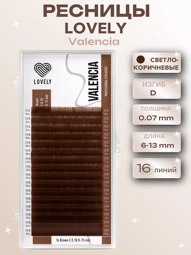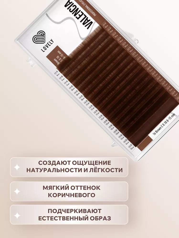 Ресницы коричневые LOVELY Valencia - 16 линий - MIX